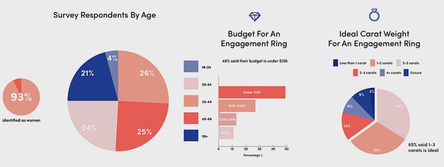 Según la Encuesta sobre Anillos de Compromiso 2021 realizada por la marca Jean Dousset, la opción más deseada para una piedra central es el diamante de 2-3 quilates. el 34% de los encuestados elegiría esta categoría frente a otras. Sólo el 34% de los clientes estarían satisfechos con un diamante que pesa menos de 2 quilates, mientras que el 23% de los consumidores desean una piedra central que pesa 3 quilates o más.