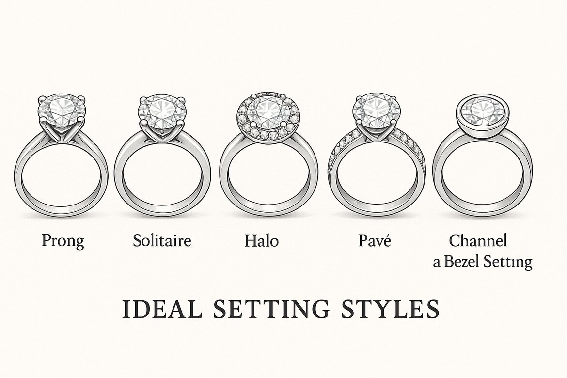 - Kanal ve Bezel Ayarları: Güvenli olsalar da, bu ayarlar pırlanta ile metal temasını artırdıkları ve potansiyel olarak ışık geri dönüşünü azalttıkları için dikkatli seçilmelidir